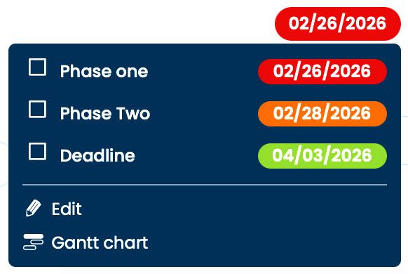 Depuis ce même menu, vous pouvez également cocher l’échéance atteinte. L’indicateur disparaît alors de la carte : le projet continue, mais cette étape est validée.